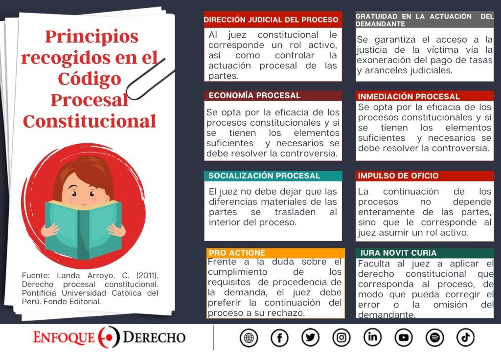 – Infografía – ¿Sabías que el Código Procesal Constitucional reconoce el principio de impulso de oficio, iura novit curia, entre otros? ¿Sabes en qué consisten? En la siguiente infografía, Enfoque Derecho explica brevemente estos y los demás principios recogidos en el mencionado cuerpo legal ¿Conoces otro? ¡Déjanos tus comentarios!