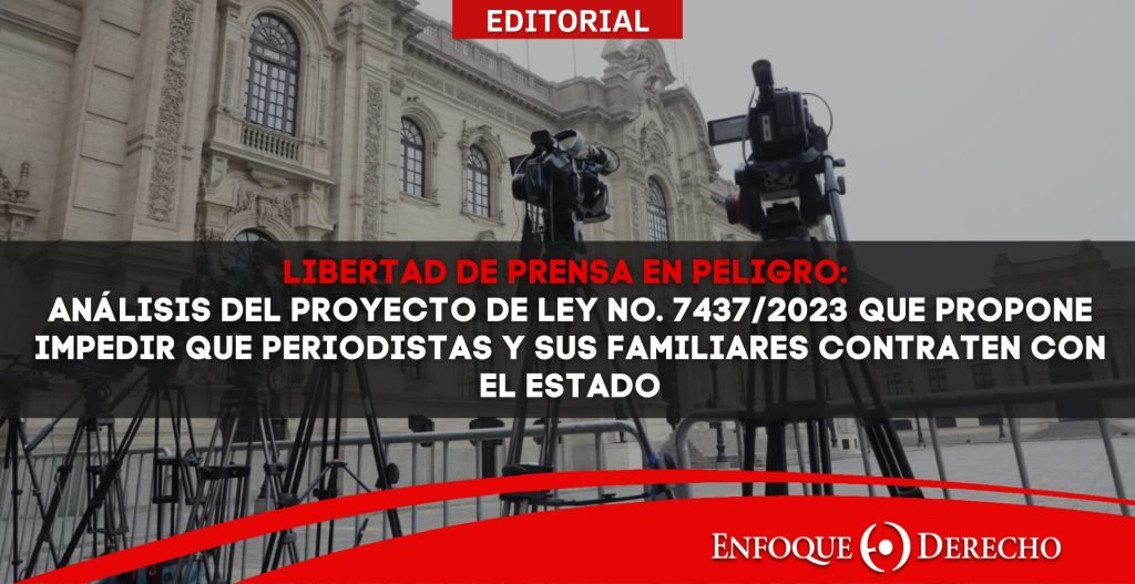 El pasado dos de abril se presentó en el Congreso el Proyecto de Ley No. 7437/2023-CR, “Ley que transparenta el ejercicio del periodismo en el Perú”. La iniciativa fue propuesta por los miembros de la bancada de Acción Popular: Jorge Flores Ancachi; Darwin Espinoza Vargas, recientemente expulsado de la bancada[1]; Wilson Soto Palacios; entre otros. A la fecha, el proyecto se encuentra en las comisiones de Economía, Banca, Finanzas e Inteligencia Financiera; y Fiscalización y Contraloría, a la espera que se expida el respectivo dictamen.